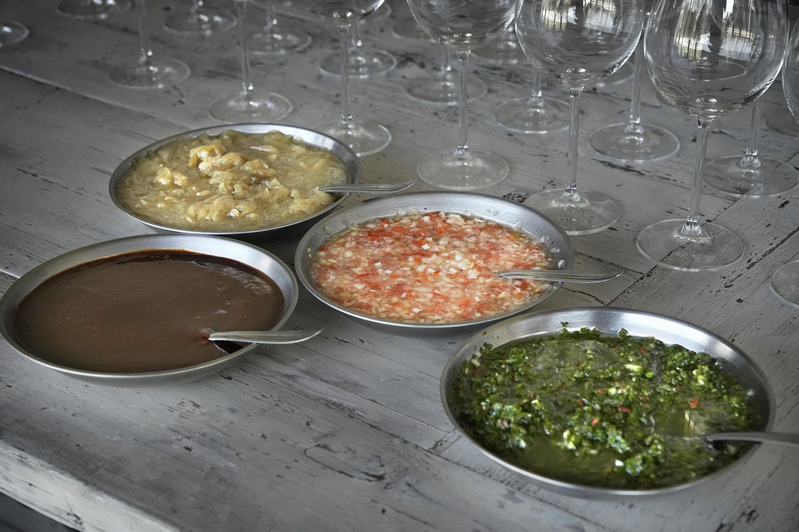 Criolla, chimichurri, barbacoa, cebollas caramelizadas